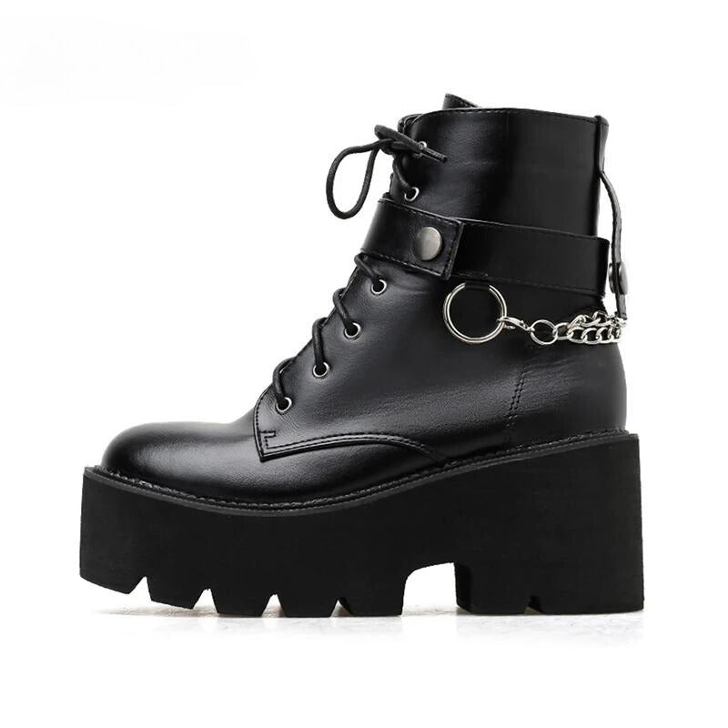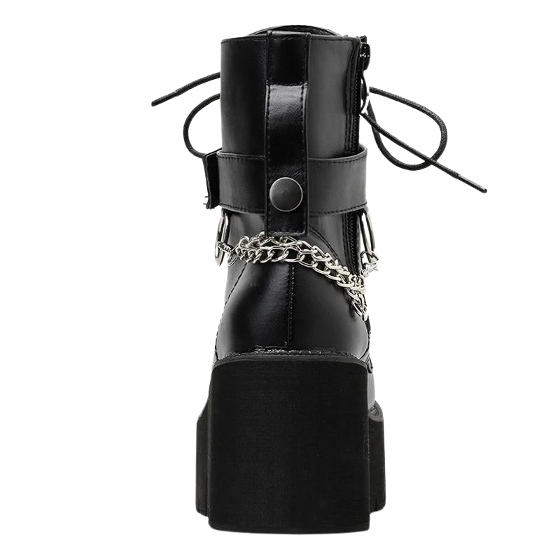 Yüzük ve Zincir Detaylı Siyah Gotik Platform Botlar